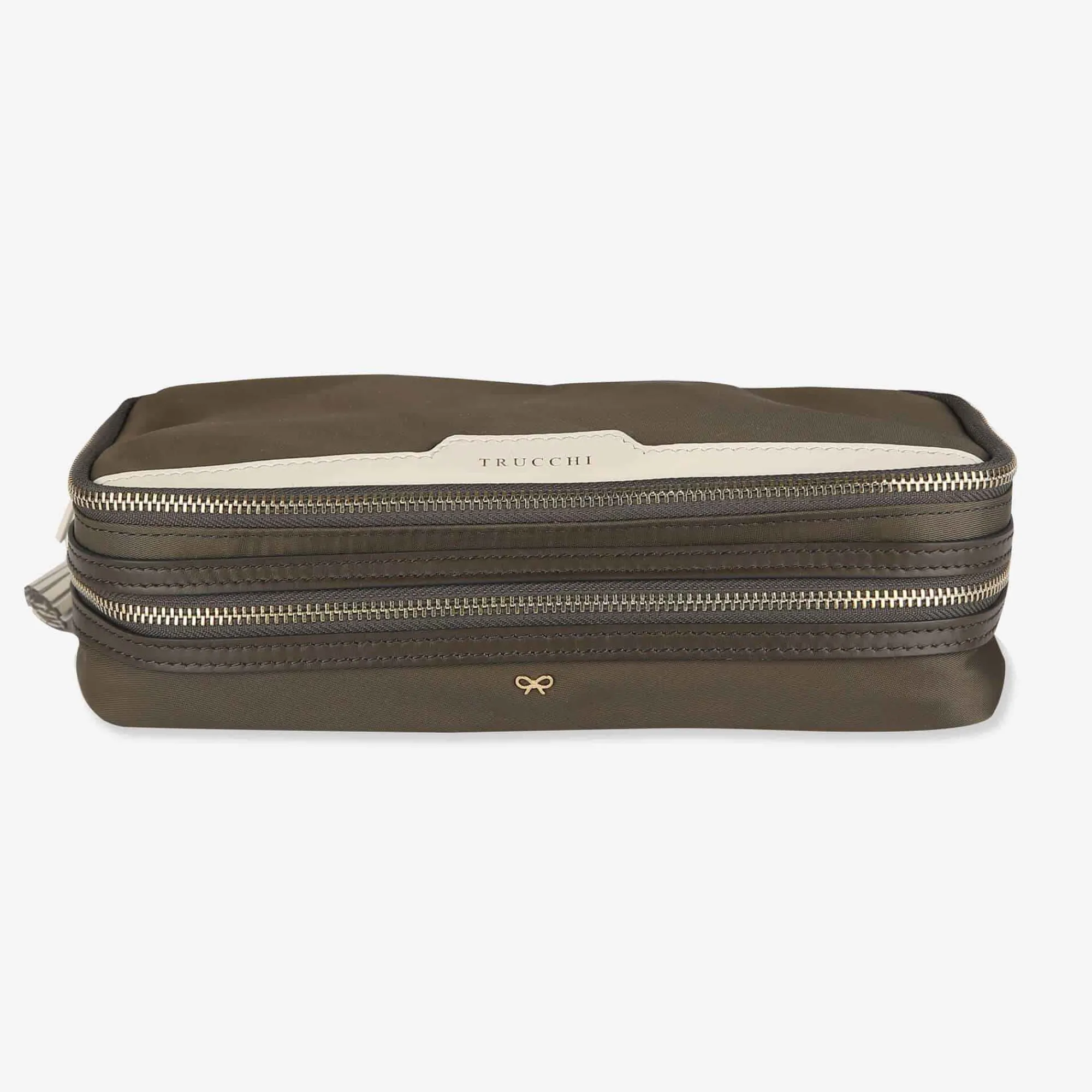 Crafted With Khaki Nylon With Chalk Smooth Eco Leather, This Issimo X Anya Hindmarch Make-Up Bag Is Ideal For Keeping Your Daily Essentials To Hand, And Comes With A Separate Space For Your Brushes.
