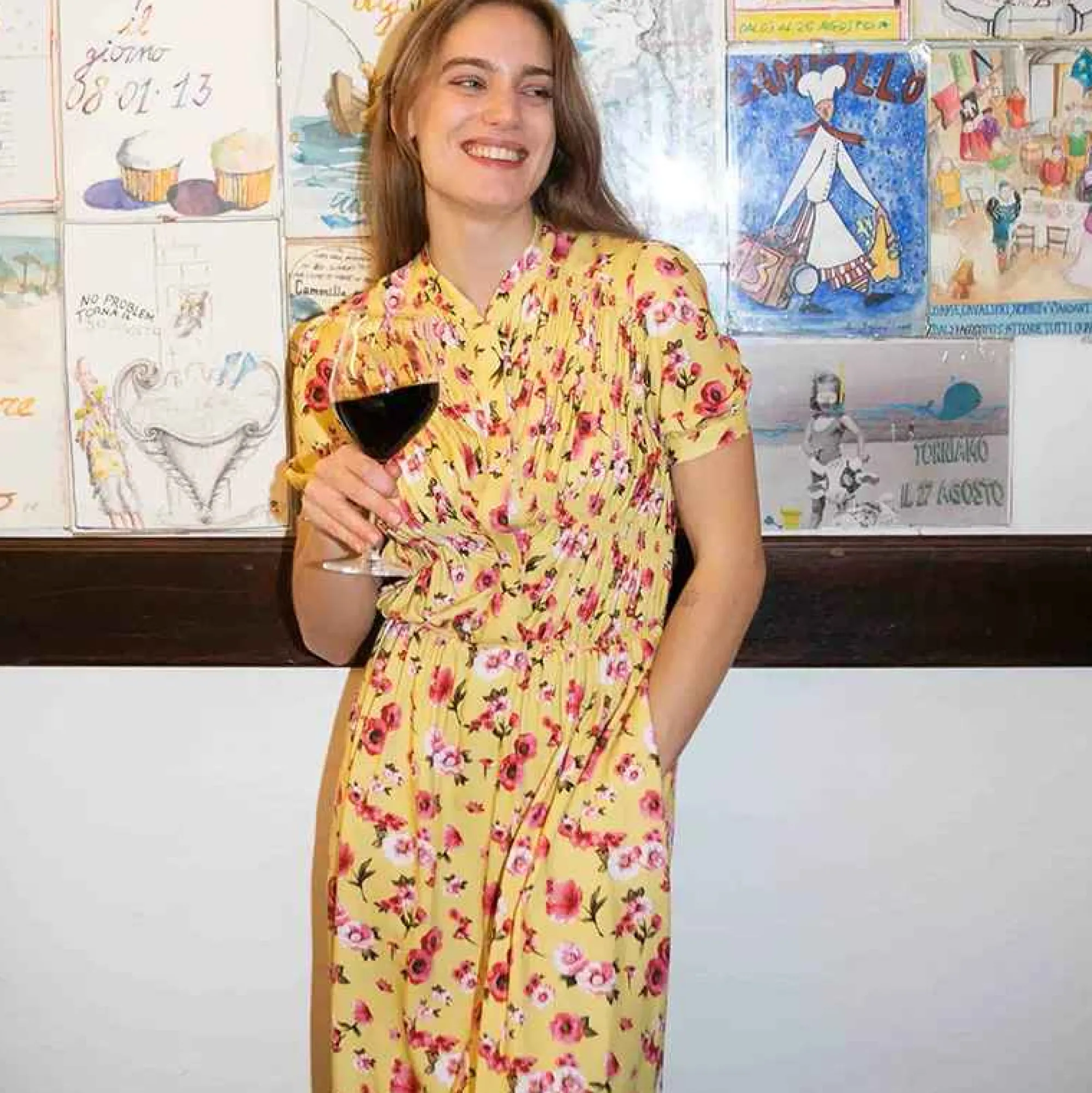Loretta Caponi Gilda Yellow Full Lenght Front Buttoned Dress With Short Sleeves Is Perfect For Every Occasion! Handmaded In Tuscany By Master Artisans.