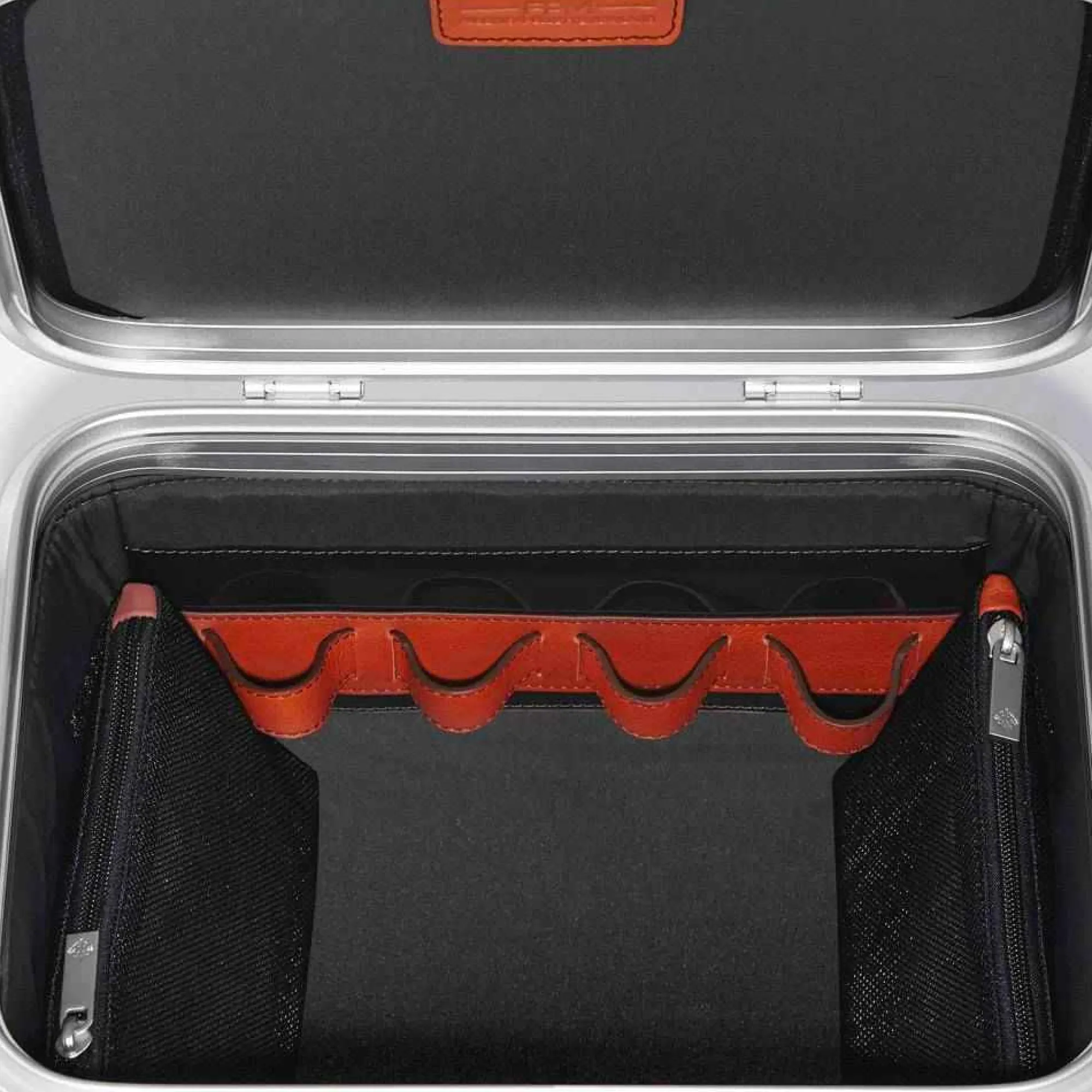 Fpm Milano Vanity Case Is 100% Aluminum And Made In Italy. It Comes With Handcrafted Leather Details That Include The Top Handle And The Internal Details. The Interior Organizer Is Enrichened By Adjustable Leather Straps And Removable Cases That Allow For An Optimum Arrangement Of Contents.