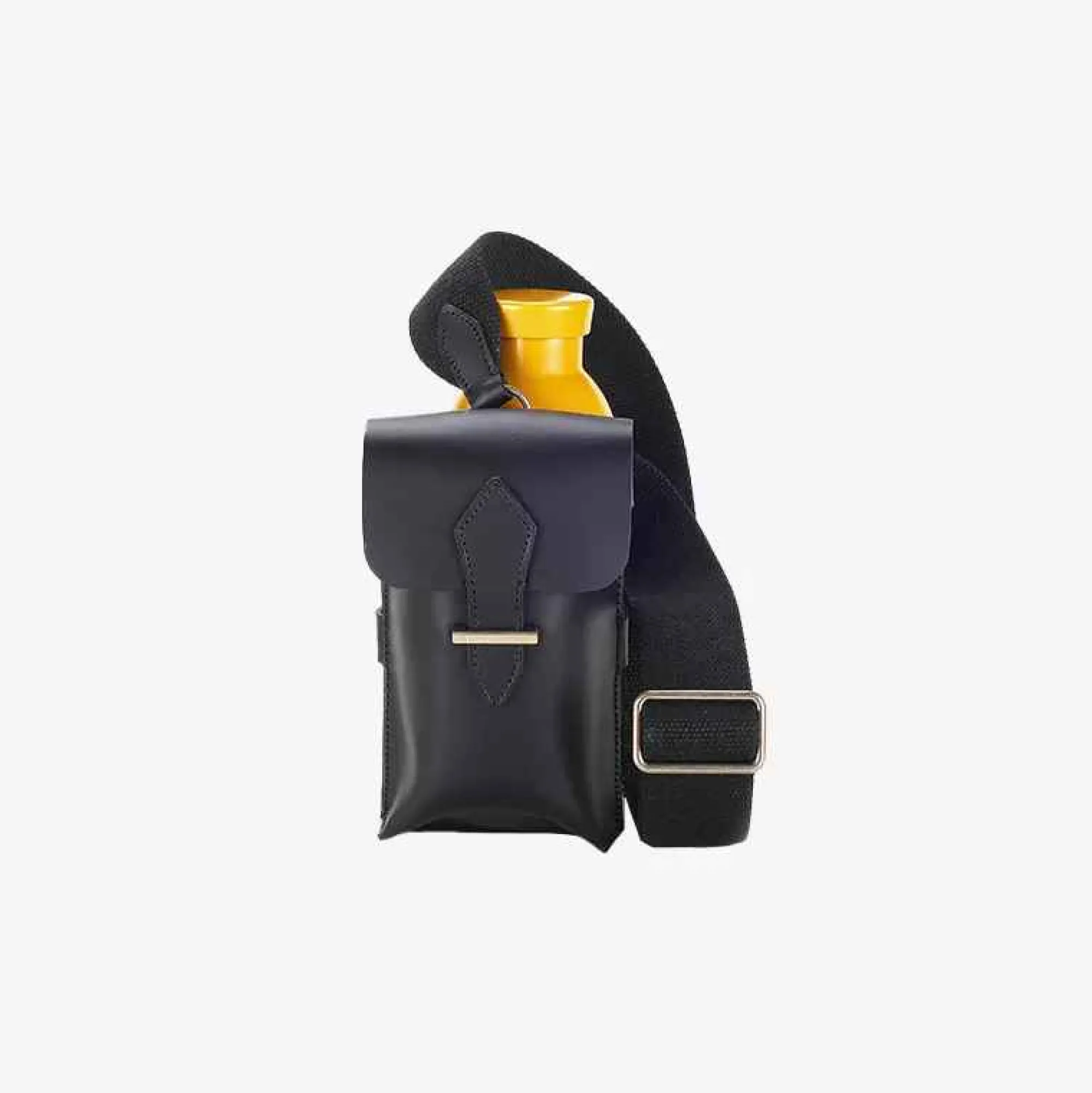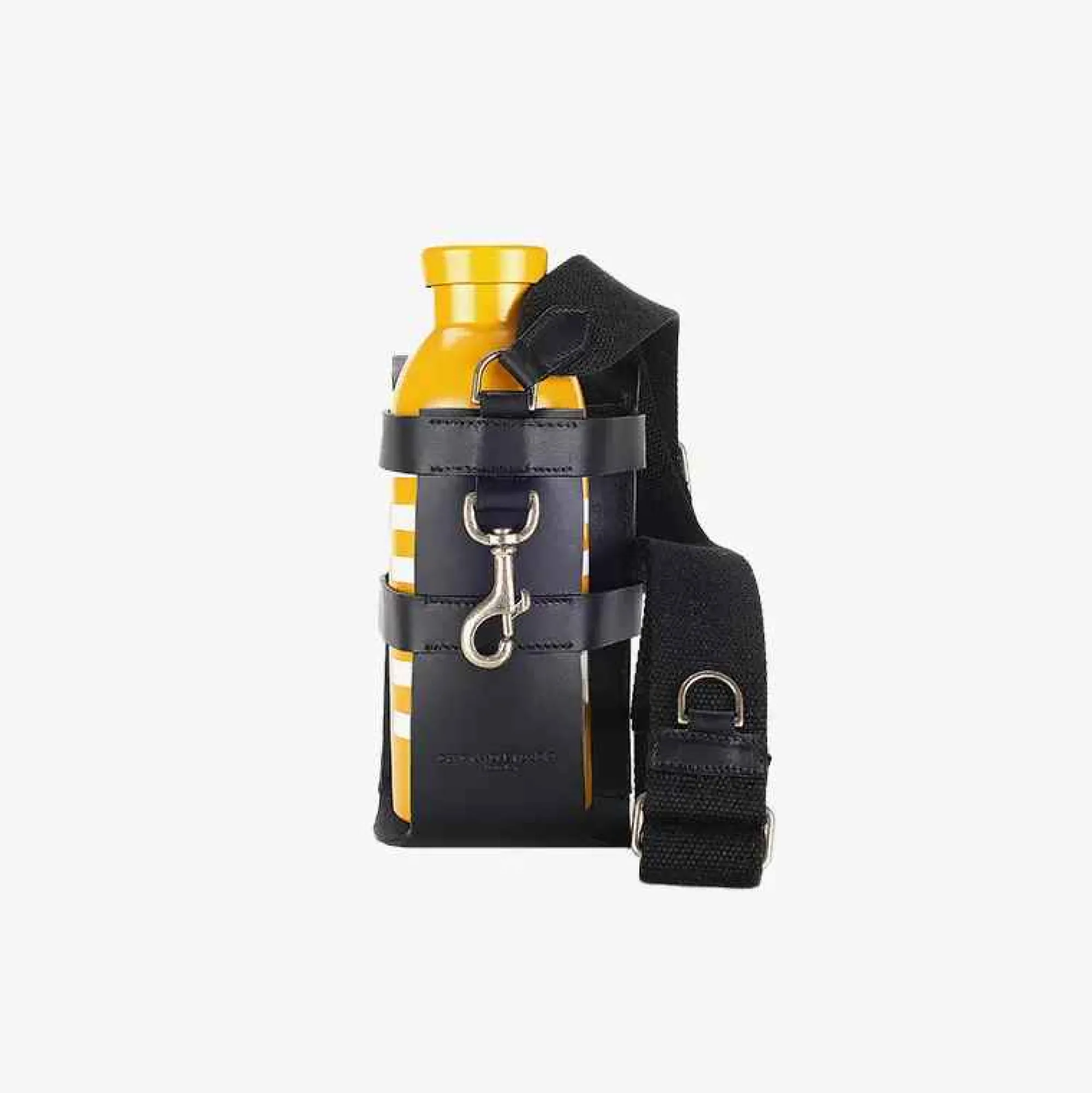 Officina Del Poggio Bottle Bag With Pocket And Bottle Black Will Become Your Best Summer Accessory. If You Want To Stay Hydrated And Plastic-Free, This Bottle Bag Is The Perfect Choice, In Vegetable-Tanned Leather With Hand-Painted Edges And With A Pocket And Key Clip To Keep Your Essentials!