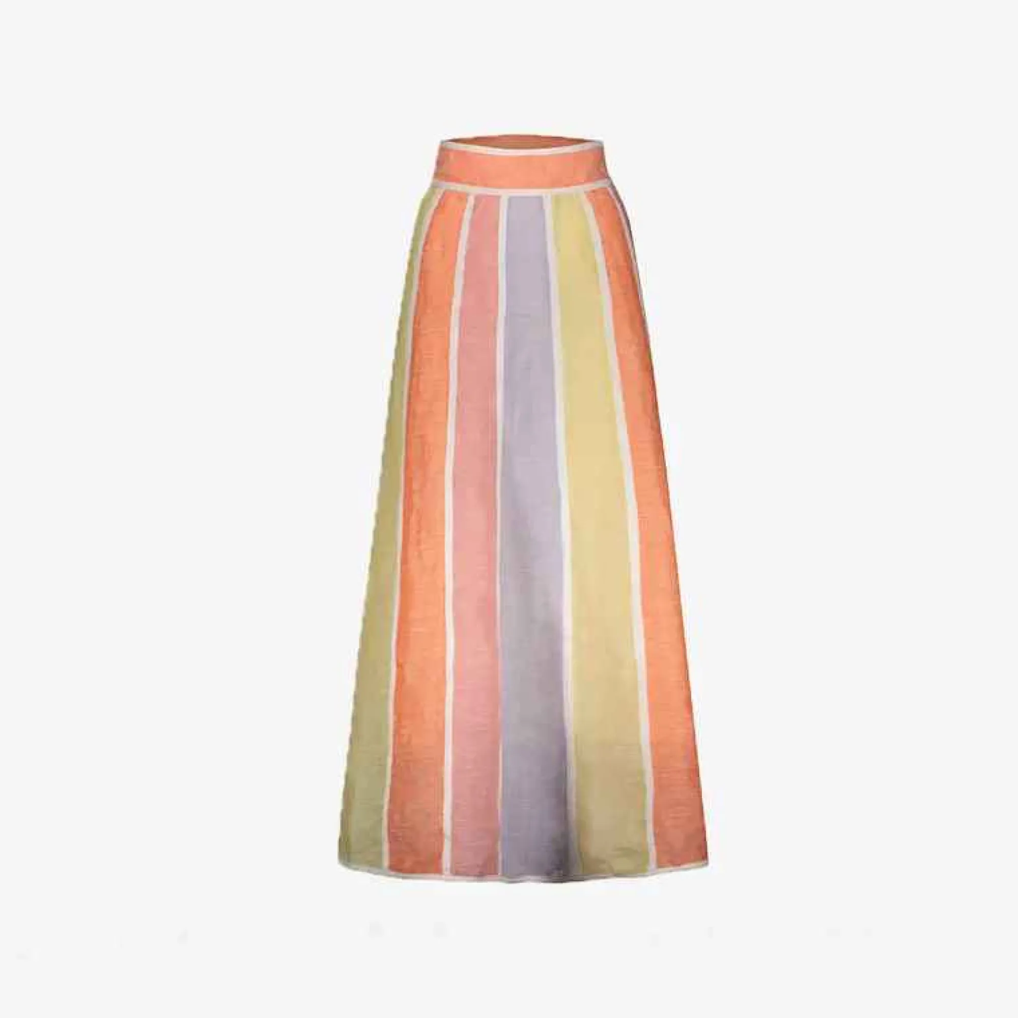 Discover The Mystical Sense Of Freedom And Happiness Evoked By The Hippie Mood And Psychedelic Hues Of Amotea Ss23 Collection. The Amotea Charline Rainbow Is A Multiprinted High Waisted Maxi Skirt Perfect To Wear With The Amotea Susie White Top.
