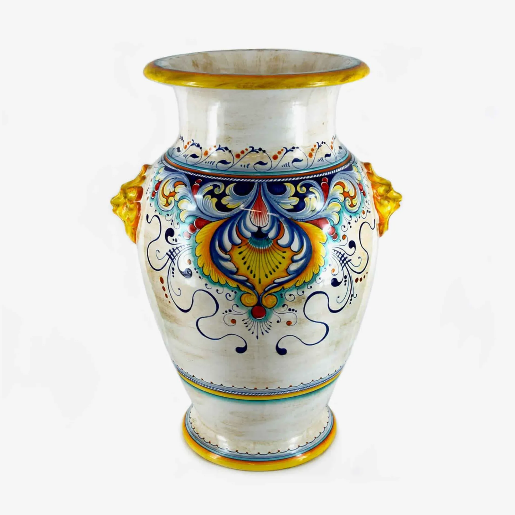 Ceramiche Artistiche Gialletti Giulio Has Set Its Production On Perpetuating And Reviving Deruta Classic Tradition In The Field Of Renaissance Art Since Its Foundation In 1959. Every Product Is Entirely Entirely Handmade And Therefore One Of A Kind, Through The Careful Combination Of Research, Expertise, And Creativity. Umbrella Stand With Mask Shaped Handles And Typical Renaissance Design. This Is A Made To Order Item And Therefore Is Not Refundable.