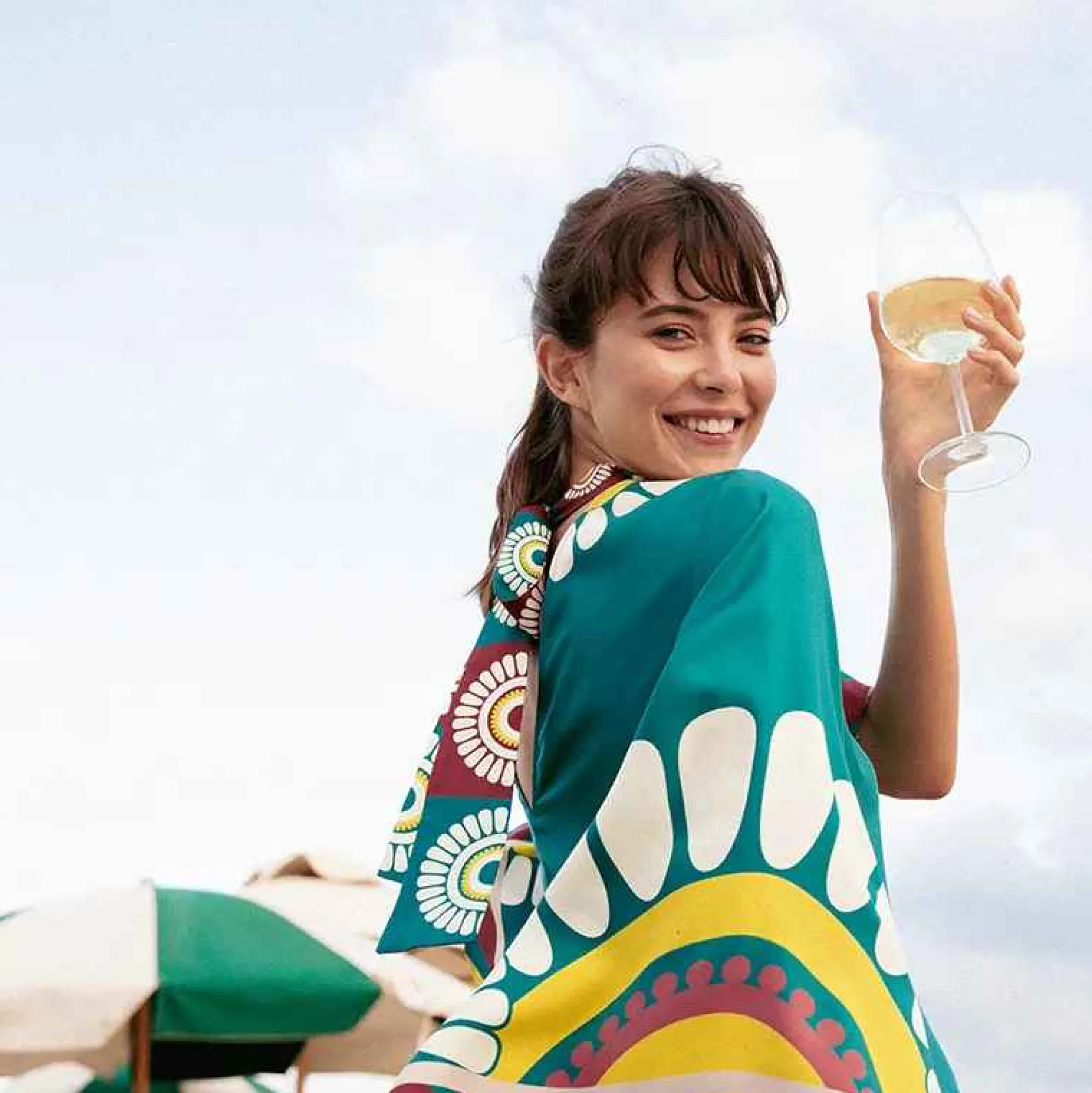 Shouldn’T Every Babe Have A Dress Called The Magnifico Hanging In Her Closet? Part Of This Sun-Soaked Issimo X La Double J Collaboration, This Super Special Blue Solar Placee Style Features A Stand-Up Collar, Long Sash At The Back And Draped Waterfall Sleeves To Glide You Around The Room With An Ease And An Elegance Reserved For The Most Exclusive Of Occasions. Made In Italy (As Always!), It’S Cut In A Glossy 100% Silk Twill And Is Finished With The Exquisitely Hand-Placed Solar Print. Magnifico Indeed.